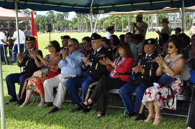 | Keywords: people outdoor FORT SHAFTER, Hawaii – Family, friends, and colleagues of nine U.S. Army Soldiers came together September 16, at historic Palm Circle, Fort Shafter, Hawaii, for a ceremonial expression of appreciation and gratitude for their combined 211 years of federal service to the U.S. Army, the U.S. Army Pacific, and the nation. FORT SHAFTER, Hawaii – Family, friends, and colleagues of nine U.S. Army Soldiers came together September 16, at historic Palm Circle, Fort Shafter, Hawaii, for a ceremonial expression of appreciation and gratitude for their combined 211 years of federal service to the U.S. Army, the U.S. Army Pacific, and the nation. |