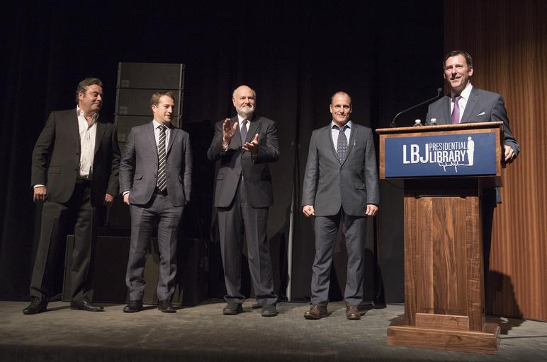 | Keywords: winner Director of the LBJ Presidential Library, Mark Updegrove, right, introduces producer Matthew George, left, writer Joey Hartstone, director Rob Reiner, and actor Woody Harrelson before a screening of their new film, LBJ, on Saturday October 22, 2016 in the LBJ Auditorium at the LBJ Library in Austin, Texas. LBJ Library photo by Jay Godwin Director of the LBJ Presidential Library, Mark Updegrove, right, introduces producer Matthew George, left, writer Joey Hartstone, director Rob Reiner, and actor Woody Harrelson before a screening of their new film, LBJ, on Saturday October 22, 2016 in the LBJ Auditorium at the LBJ Library in Austin, Texas. LBJ Library photo by Jay Godwin |