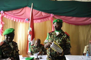 | Keywords: AMISOM's new contingent comander, Colonel Ndayambaje Revelien, speaks at a ceremony to mark the rotation of 78 of his troops back home to Burundi. AMISOM Photo AMISOM's new contingent comander, Colonel Ndayambaje Revelien, speaks at a ceremony to mark the rotation of 78 of his troops back home to Burundi. AMISOM Photo |