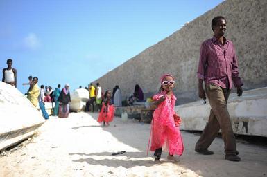 | Keywords: africa eid eid al-fitr eidalfitr lido lido beach lidobeach mogadishu somalia beach celebration holiday outdoor A little girl and her father walk on Lido beach in Mogadishu, Somalia, during Eid al-Fitr on July 28. AMISOM Photo / Tobin Jones A little girl and her father walk on Lido beach in Mogadishu, Somalia, during Eid al-Fitr on July 28. AMISOM Photo / Tobin Jones |