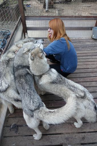 Keywords: dog dogs kennel husky huskies girl red_hair redhair 100_kg_of_love 100kgoflove tongue tongues outdoor