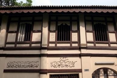 Keywords: masjid hajjah fatimah mosque singapore kampong glam beach road public domain publicdomain outdoor Painted in brown and cream colours, the mosque is a unique blend of both Malaccan style and European classical elements. Its key elements include the entrance gate, the minaret tower, the ablution area, the prayer hall, the mausoleum, a garden and the imam's residence. Next to the mosque are ancillary buildings. infopedia.nl.sg/articles/SIP_259_2005-01-06.html Painted in brown and cream colours, the mosque is a unique blend of both Malaccan style and European classical elements. Its key elements include the entrance gate, the minaret tower, the ablution area, the prayer hall, the mausoleum, a garden and the imam's residence. Next to the mosque are ancillary buildings. infopedia.nl.sg/articles/SIP_259_2005-01-06.html