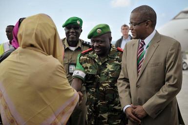 | Keywords: The Special Envoy on Women, Peace and Security of the Chairperson of the African Union Commision, Bineta Diop , meets with the African Union Mission in Somalia's (AMISOM) Force Commander, Lt. General Silas Ntigurirwa, at Mogadishu's Aden Adde airport in Somalia on November 25. The Special Envoy on Women, Peace and Security of the Chairperson of the African Union Commision, Bineta Diop, landed in Somalia today to begin a two day visit in which she will meet with both government and African Union officials to discuss women's issues in the country. AMISOM Photo / Tobin Jones The Special Envoy on Women, Peace and Security of the Chairperson of the African Union Commision, Bineta Diop , meets with the African Union Mission in Somalia's (AMISOM) Force Commander, Lt. General Silas Ntigurirwa, at Mogadishu's Aden Adde airport in Somalia on November 25. The Special Envoy on Women, Peace and Security of the Chairperson of the African Union Commision, Bineta Diop, landed in Somalia today to begin a two day visit in which she will meet with both government and African Union officials to discuss women's issues in the country. AMISOM Photo / Tobin Jones |