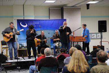 Keywords: The Blue Moon Blues Band played an intimate unplugged performance on Wednesday, October 21st, 2009, at Central Library, as part of KPLs ongoing Live Music series. music concert michigan blues kalamazoo