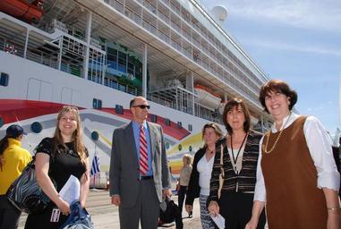 Keywords: matthewman cruise visit usa visitusa outdoor U.S. Chargé D'Affaires Robin Matthewman visited the Norwegian Cruise Line "Sun" in Montevideo, December 7, to meet with members of the newly formed Argentina-Uruguay Visit USA Committee on joint marketing initiatives for attracting more Uruguayan and Argentine visitors to the United States. For more information, please visit: archives.uruguay.usembassy.gov/usaweb/2009/09-336EN.shtml [U.S. Embassy photo by Vince Alongi / Copyright info] U.S. Chargé D'Affaires Robin Matthewman visited the Norwegian Cruise Line "Sun" in Montevideo, December 7, to meet with members of the newly formed Argentina-Uruguay Visit USA Committee on joint marketing initiatives for attracting more Uruguayan and Argentine visitors to the United States. For more information, please visit: archives.uruguay.usembassy.gov/usaweb/2009/09-336EN.shtml [U.S. Embassy photo by Vince Alongi / Copyright info]