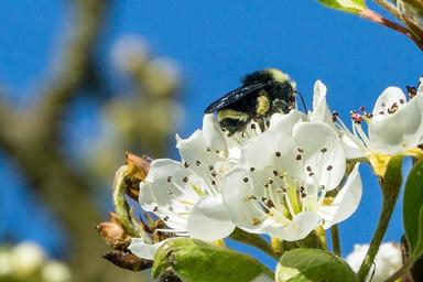 Keywords: wildlife outdoor Bumble Bee and Pear blossoms. Bumble Bee and Pear blossoms.
