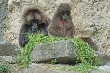 Keywords: dschelada monkey primates pair social mammal food eat wildlife photography
