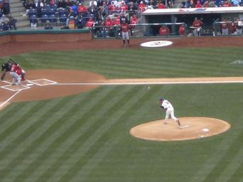 Keywords: DSCN5476.JPG Roy Halladay throwing the first pitch of the 2011 season 2011-04-01 own Peetlesnumber1 Cc-zero Roy Halladay 2011 Philadelphia Phillies season