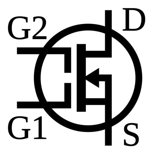 Keywords: Dual Gate N Channel IGFET.svg en Schematic symbol for a dual gate N-Channel mosfet device 2012-06-15 own Aflafla1 cc-zero IGFET transistor symbols Uploaded with UploadWizard