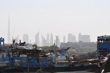 Keywords: dubai cityscape skyline emirates arab skyscraper harbor boats highrise