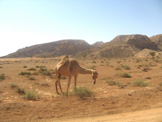 Keywords: dubai desert landscape mountains camel animal plants brush nature outside