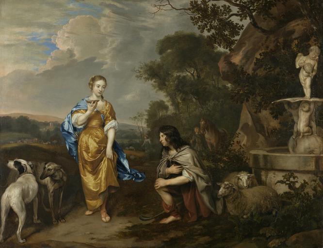 | Keywords: Dubbelportret van een jong paar als Granida en Daifilo Rijksmuseum SK-A-1856.jpeg accession number SK-A-1856 Jan Mijtens credit line nl Dubbelportret van een jong paar als Granida en Daifilo in een Italiaans landschap Granida staat links met enkele jachthonden en een schelp met water in de hand rechts knielt de herder Dailio met enkele schapen bij een fontein met putti drager Height cm 112 drager Width cm 143 5 incl lijst Height cm 119 incl lijst Width cm 151 incl lijst Diepte cm 7 5 exhibition history 2009-2013 Langdurig bruikleen Mijtens Muiden 2009-2009 Hooft op hol Muiden Institution Rijksmuseum Technique oil canvas object history Acquisition 1900-04-01 object type Potential derivatives exist check http //commons wikimedia org/w/index php search Rijksmuseum+SK-A-1856 this search PD-US PD-old Data and photography rights All data and all images made available through the API are either in the public domain or are subject to a CC0 license https //www rijksmuseum nl/en/api/terms-and-conditions-of-use cc-zero place of creation http //www rijksmuseum nl/collectie/SK-A-1856 Dubbelportret van een jong paar als Granida en Daifilo Q17324885 Uploaded with GWToolset Dubbelportret van een jong paar als Granida en Daifilo Rijksmuseum SK-A-1856 http //www rijksmuseum nl/media/assets/SK-A-1856 Images uploaded by Fæ Images from the Rijksmuseum Paintings by Johannes Mijtens in the Rijksmuseum Amsterdam Johannes Mijtens |