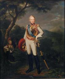 | Keywords: Duchesne - Charles, comte d'Artois, en uniforme de colonel-général des Carabiniers.jpg artwork Charles Duchesne 1818 Oil on canvas cm 47 40 Institution Versailles 000PE012966 other versions PD-old-100 DEFAULTSORT 1818; Charles X PD-old files by User Jimmy from fr wikipedia Charles Duchesne 19th-century portrait paintings in the Musée national du Château de Versailles Portrait paintings of Charles X of France 1818 oil on canvas paintings in France 1818 portrait paintings from France Male 19th-century oil portraits of standing men at full length wearing military uniforms Carabiniers-à-Cheval Colonel général France Left hand on hip in portrait paintings Order of Saint Louis Portraits wearing cuirass Portrait paintings with natural background Portraits with swords Sash of the Order of the Holy Spirit in portrait paintings Swiss guards France |