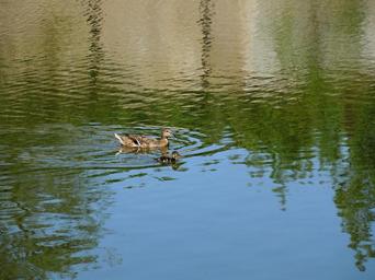 Keywords: duck cub bird water pond swim blue green