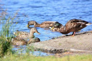 Keywords: duck lake water summer beach rock family finnish nature lake in finland blue shoreline peace nature photo
