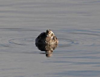 Keywords: outdoor animal When first posted I had thought that this bird was an adult male. Doing more research, I now feel that it was a HY male in "supplemental 1" plumage or there-about. Primary reason being the amount of brown in the face and flanks and breast. I think that in an adult male in molt that the mix would be black and white, not brown and white. And although the bill of an adult male might be all gray at this time of year, I think that this is more likely of an imm bird. The following is copied from NA Birds: "Alternate I Plumage Prealternate I molt begins in Oct and continues to mid-Dec. Timing known only for male, assumed to be similar for female (Palmer 1976). Partial molt; Juvenal wing and Basic I tail and belly retained. Male. A less well-defined version of Definitive Alternate male plumage. Gray patch around eye more brown and less well defined, loral-patch dark brown (not black). Breast has smaller and less crisp black band than in Definitive Alternate. Back a mixture of black and white feathers; scapulars gray to white. Sides and flanks light gray, belly white." Robertson, Gregory J. and Jean-Pierre L. Savard. 2002. Long-tailed Duck (Clangula hyemalis), The Birds of North America Online (A. Poole, Ed.). Ithaca: Cornell Lab of Ornithology; Retrieved from the Birds of North America Online: bna.birds.cornell.edu/bna/species/651 doi:10.2173/bna.651 When first posted I had thought that this bird was an adult male. Doing more research, I now feel that it was a HY male in "supplemental 1" plumage or there-about. Primary reason being the amount of brown in the face and flanks and breast. I think that in an adult male in molt that the mix would be black and white, not brown and white. And although the bill of an adult male might be all gray at this time of year, I think that this is more likely of an imm bird. The following is copied from NA Birds: "Alternate I Plumage Prealternate I molt begins in Oct and continues to mid-Dec. Timing known only for male, assumed to be similar for female (Palmer 1976). Partial molt; Juvenal wing and Basic I tail and belly retained. Male. A less well-defined version of Definitive Alternate male plumage. Gray patch around eye more brown and less well defined, loral-patch dark brown (not black). Breast has smaller and less crisp black band than in Definitive Alternate. Back a mixture of black and white feathers; scapulars gray to white. Sides and flanks light gray, belly white." Robertson, Gregory J. and Jean-Pierre L. Savard. 2002. Long-tailed Duck (Clangula hyemalis), The Birds of North America Online (A. Poole, Ed.). Ithaca: Cornell Lab of Ornithology; Retrieved from the Birds of North America Online: bna.birds.cornell.edu/bna/species/651 doi:10.2173/bna.651
