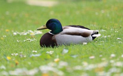 Keywords: duck mallard grass flowers bird waterfowl male