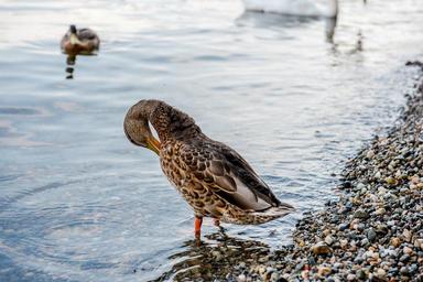 Keywords: duck nature animal water movement wild bird swim color lake pond brown mini head small