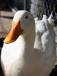 Keywords: duck pekin white older bill feathers fowl bird attitude farm pen nature close-up animal mature fauna peking orange beak webbed