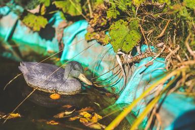 Keywords: duck pond plastic water leaves dirty old