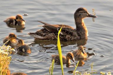 Keywords: duck water bird wild pond ducks cub ducklings momma family