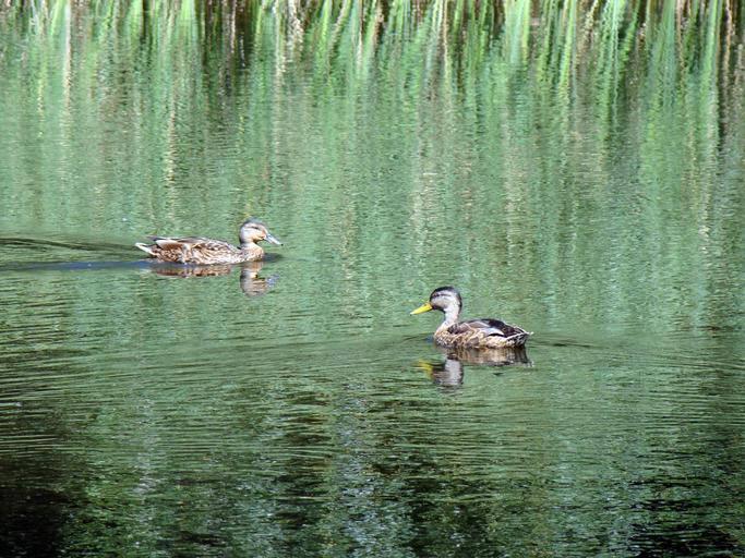 Keywords: duck wild ducks pond lake reeds reflection glitter ripple pattern green bright