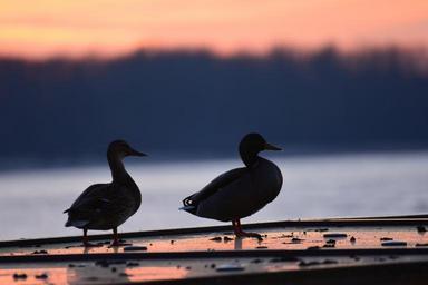 Keywords: ducks afterglow sunset evening sky abendstimmung mood sky atmosphere birds