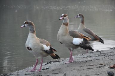 Keywords: ducks bird water nature wing animal beak lake pond waterbird three reflection environment brown aqua natural first row line walking follow lead group order walk