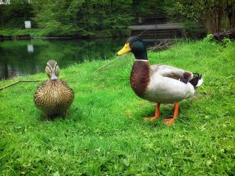 Keywords: ducks birds macro close-up lake water grass plants waterfowl fowl