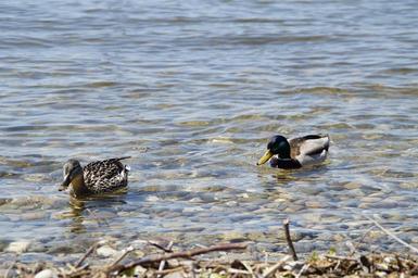 Keywords: ducks mallards birds duck bird water bird pair couple male and female woman and man man and woman aquatic animals drake animals swim lake pond water animal world nature two togetherness poultry
