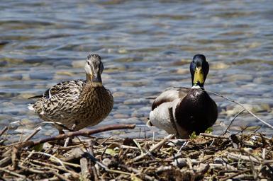 Keywords: ducks mallards birds duck bird water bird pair couple male and female woman and man man and woman aquatic animals drake animals swim lake pond water animal world nature two togetherness poultry