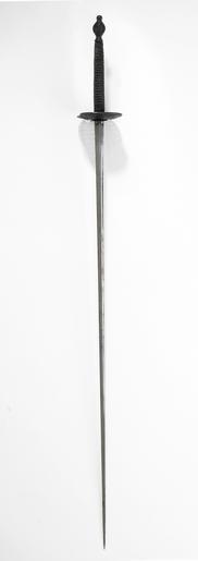 | Keywords: Duellvärja - Livrustkammaren - 39603.tif Fäste av mörkanlöpt stål Knapp med oval kontur och runt tvärsnitt ornerad med rombiskt rutmönster i relief Nitknapp hög med insvängd hals Parerplåtar symmetriskt njurformiga med ytmönster av genombrutna runda hål Kavel med mjukt rektangulärt tvärsnitt klädd med gråsvart fiskskinn glest lindad med mörkanlöpt tunn tvinnad ståltråd Lindningen tätare upptill och nedtill <br/><br/>Klinga treeggad s k stukatklinga Vid klingbasen två otydliga stämplar varav den ena ett krönt B Nedtill på klingans bredsida etsat i skrivstil Manuf re de Klingenthal Coulaux ainé Co original caption duellvärja - LRK 5565 early other date century 19 steel b12 - blankvapen - fäste och klinga material stål size mm 1070 size mm 85 size mm 870 klinga size mm 20 klinga g 360 LRK Fäktning på lek och allvar place of origin Klingenthal original filename lm_dig0388 42189 inventory number LRK 5565 39603 CC-BY-SA Göran Schmidt Göran Schmidt Media contributed by LSH unmatched material Media contributed by LSH dim-with multiple size templates Media contributed by LSH unmatched creator Sword images from Livrustkammaren Media contributed by LSH 2013-10 |