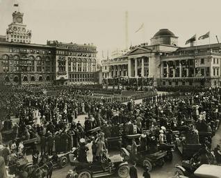 | Keywords: monochrome outdoor vehicle bike Vancouver Court House, 800 West Georgia Street, Vancouver, BC. The new Court House building during the civic welcome of Canada's Governor General, the Duke of Connaught, on September 18, 1912. The Court House (built 1907-12) was designed by the Victoria architect Francis Mawson Rattenbury, as was the C.P.R. Hotel Vancouver extension (1905-1949) on the left of the picture. Vancouver Court House, 800 West Georgia Street, Vancouver, BC. The new Court House building during the civic welcome of Canada's Governor General, the Duke of Connaught, on September 18, 1912. The Court House (built 1907-12) was designed by the Victoria architect Francis Mawson Rattenbury, as was the C.P.R. Hotel Vancouver extension (1905-1949) on the left of the picture. |