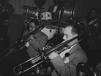 | Keywords: Duke Ellington - Hurricane Ballroom - Juan Tizol.jpg Juan Tizol valve and trombone player of Duke Ellington's orchestra at the Hurricane Library of Congress Prints and Photographs Division Farm Security Administration - Office of War Information Photograph Collection http //hdl loc gov/loc pnp/fsa 8d13219 1943-04 Gordon Parks Farm Security Administration PD http //www loc gov/rr/print/res/268_parks html LOC-image fsa 8d13219 Duke Ellington Music in 1943 People with trombones PD-USGov | ||||