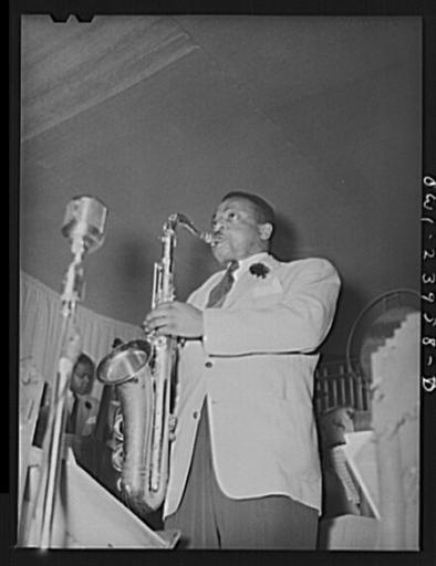 | Keywords: Duke Ellington - Hurricane Ballroom - tenor saxophone.jpg Tenor saxophone player with Duke Ellington's orchestra at the Hurricane Library of Congress Prints and Photographs Division Farm Security Administration - Office of War Information Photograph Collection http //hdl loc gov/loc pnp/fsa 8d13235 1943-04 Gordon Parks Farm Security Administration PD http //www loc gov/rr/print/res/268_parks html LOC-image fsa 8d13235 Duke Ellington 1940s fashion PD-USGov ImageNote 1 16 3 411 538 431 560 2 Ben Webster - tenor saxophone ImageNoteEnd 1 |