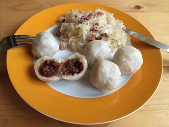 Keywords: dumpling grammel dumplings sauerkraut sausage dumpling meat dumplings selchspeckknödel dough eat lunch cook flour food