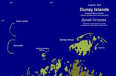 Keywords: Dunay1a.png en color map of island group Own Mohonu 2008-07-07 <gallery> File Dunay1a_RU png Русский</gallery> Maps of the Laptev Sea Maps of islands of Russia
