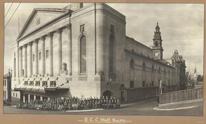 Keywords: dunedin council town hall staff municipal historic architecture outdoor photo border building DCC Archives, Photo 190 DCC Archives, Photo 190
