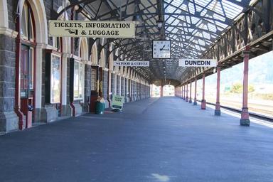 | Keywords: road architecture In an eclectic, revived Flemish renaissance style, (Renaissance Revival architecture), the station is constructed of dark basalt from Kokonga in the Strath-Taieri with lighter Oamaru stone facings, giving it the distinctive light and dark pattern common to many of the grander buildings of Dunedin and Christchurch. Pink granite was used for a series of supporting pillars which line a colonnade at the front. The roof was tiled in terracotta shingles from Marseilles surmounted by copper-domed cupolas. The southern end is dominated by the 37-metre clocktower visible from much of central Dunedin. The booking hall features a mosaic floor of almost 750,000 Minton tiles. A frieze of Royal Doulton porcelain runs around the balcony above it from which the floor's design, featuring a locomotive and related symbols, can be clearly seen. The main platform is the country's longest,[citation needed] extending for about 500 metres. The foundation stone was laid by the Minister of Railways Joseph Ward on 3 June 1904. The Prime Minister Richard Seddon was also present. The station was opened by Ward, by then Prime Minister, in 1906. Construction was kept within budget, and cost £40,000. en.wikipedia.org/wiki/Dunedin_Railway_Station In an eclectic, revived Flemish renaissance style, (Renaissance Revival architecture), the station is constructed of dark basalt from Kokonga in the Strath-Taieri with lighter Oamaru stone facings, giving it the distinctive light and dark pattern common to many of the grander buildings of Dunedin and Christchurch. Pink granite was used for a series of supporting pillars which line a colonnade at the front. The roof was tiled in terracotta shingles from Marseilles surmounted by copper-domed cupolas. The southern end is dominated by the 37-metre clocktower visible from much of central Dunedin. The booking hall features a mosaic floor of almost 750,000 Minton tiles. A frieze of Royal Doulton porcelain runs around the balcony above it from which the floor's design, featuring a locomotive and related symbols, can be clearly seen. The main platform is the country's longest,[citation needed] extending for about 500 metres. The foundation stone was laid by the Minister of Railways Joseph Ward on 3 June 1904. The Prime Minister Richard Seddon was also present. The station was opened by Ward, by then Prime Minister, in 1906. Construction was kept within budget, and cost £40,000. en.wikipedia.org/wiki/Dunedin_Railway_Station |