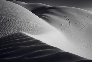 Keywords: dunes desert sand nature scenic waste tracks lonely vast outdoor environment landscape sand dunes black and white