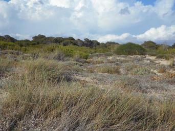 Keywords: dunes dune landscape empty fouling sandy rest quiet recovery nature landscape mallorca mediterranean coast grasses dune vegetation summer silent sky holiday horizon sand