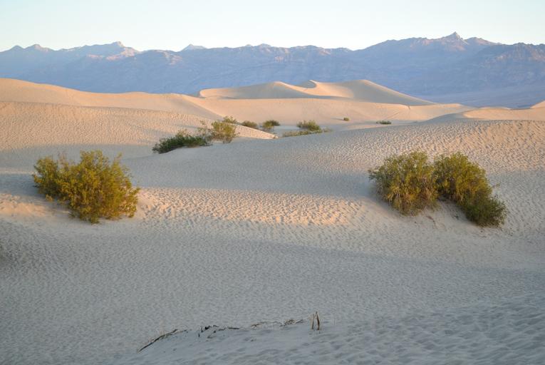 Keywords: dunes sand death valley desert landscape park california usa dry hot outdoors natural ripples wind shadows landmark desolate evening sunset twilight tumbleweed