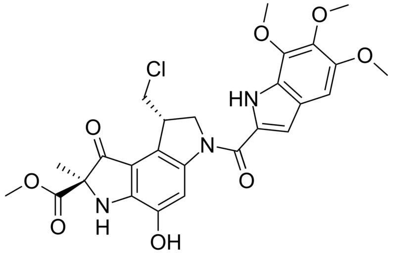 Keywords: Duocarmycin C2.svg Chemical structure of duocarmycin C2 Own 18 35 30 September 2011 UTC Ed Edgar181 Duocarmycins Organochlorides