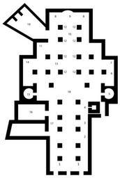 | Keywords: Duomo Siena interior.svg Plan of Siena Cathedral 1 Antonio Federighi Holy Water Stoups 2 Raffaello Vanni St Francis de Sales 3 Pier Dandini Saint Catherine 4 Bell Tower 5 Gian Luigi Bernini Madonna del Voto Chapel 6 Luigi Mussini Saint Crescentius 7 Alessandro Casolani Nativity 8 Wooden Choir 9 Duccio di Buoninsegna Stained Glass Window 10 Baldassare Peruzzi Main Altar 11 Donatello Bishop Pecci's Tomb 12 Domenico Beccafumi Angel Candelabra Holders 13 Nicola Pisano Pulpit 14 Francesco Vanni Saint Ansanus 15 Donatello St John the Baptist 16 Piccolomini Library 17 Andrea Bregno Piccolomini Altar 18 Pavement 19 Sacristy Pianta della cattedrale di Siena 1 Acquasantiere di Antonio Federighi 2 S Francesco di Sales di Raffaello Vanni 3 S Caterina di Pier Dandini 4 Torre campanaria 5 Cappella della Madonna del Voto di Bernini 6 San Crescenzio di Luigi Mussini 7 Natività di Alessandro Casolani 8 Coro ligneo 9 Vetrata di Duccio da Buoninsegna 10 Altare maggiore di Baldassare Peruzzi 11 Lastra tombale di Giovanni Pecci di Donatello 12 Angelo portacero di Domenico Beccafumi 13 Pulpito di Nicola Pisano 14 Sant'Ansano di Francesco Vanni 15 San Giovanni Battista di Donatello 16 Libreria Piccolomini 17 Altare Piccolomini di Andrea Bregno 18 Pavimento 19 Sagrestia <gallery>Image Duomo Siena interior Apr 2008 5 JPG</gallery> 2008 Gothika created with Adobe Illustrator Image may be used for any purpose Cathedral Siena - Plans SVG buildings |