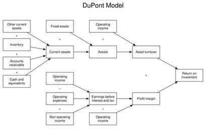 Keywords: DuPontModelEng.svg en Diagram of DuPont analysis of return on equity no Diagram over DuPont-analyse av kapitalrentabilitet own Tapir666 2010-11-18 Cc-zero Business Finance diagrams Finance