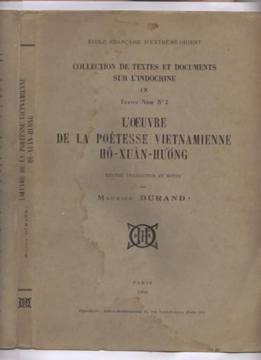 | Keywords: Durand cover Ho Xuan Huong 1968.png  en Cover of the book by Maurice Durand L'œuvre de la poétesse vietnamienne Hồ-Xuân-Hương Textes traduction et notes Ecole française d'Extrême-Orient Collection de textes et documents sur l'Indochine; n° 9 ; textes nom ; n° 2 Adrien-Maisonneuve Paris 1968 ix + 192 pp fr Couverture du livre de Maurice Durand « L'œuvre de la poétesse vietnamienne Hồ-Xuân-Hương Textes traduction et notes » Ecole française d'Extrême-Orient Collection de textes et documents sur l'Indochine; n° 9 ; textes nom ; n° 2 Adrien-Maisonneuve Paris 1968 ix + 192 pp Own Myself 2010-01-13 Hồ Xuân Hương Book covers from France  |