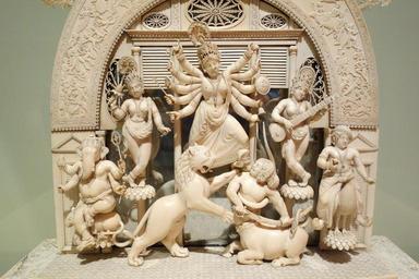 | Keywords: Durga Mahishasuramardini by Toolsee Ram, view 3, India, Bengal, 1836, ivory and mirror - Berkeley Art Museum and Pacific Film Archive - DSC04163.JPG en Exhibit in the Berkeley Art Museum and Pacific Film Archive 2625 Durant Avenue 2250 Berkeley California USA This museum is part of the University of California Berkeley This artwork is in the public domain because the artist died more than 70 years ago Photography of this exhibit was permitted without restriction 2013-11-14 17 00 32 own Daderot other versions cc-zero Sculptures from India in the Berkeley Art Museum and Pacific Film Archive Uploaded with UploadWizard Durga in sculpture Indian ivory |