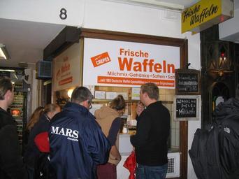 | Keywords: Düsseldorfer Waffel-Flashmob Juni 2011 b.jpg Düsseldorf Bolkerstraße 8 Juni 2011 Dem seit 1969 bestehende Waffelbüdchen in der Altstadt ist vom Hauswirt gekündigt worden stattdessen soll eine Mandelrösterei einziehen Eine Facebookgruppe žPro Waffel laut Düsseldorf EXPRESS zum Zeitpunkt des Fotos mit 700 Mitgliedern engagiert sich für den Erhalt des winzigen Waffellädchens Own photo 2011-06-25 Kürschner <span class signature-talk >talk</span> 17 17 25 June 2011 UTC Kürschner <gallery> File Düsseldorfer Waffel-Flashmob Juni 2011 a jpg </gallery> Bolkerstraße Düsseldorf Waffles |