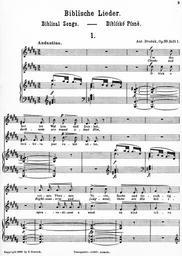 | Keywords: Dvorak's Biblicke Pisne i-3.jpg Dvorak's_Biblicke_Pisne_i- jpg 2 4 Antonín Dvořák's Biblícké Písně Biblical Songs Op 99 1884 Book 1 containing Songs 1-5 While Dvorak later orchestrated the work this the complete original piano-and-voice version While the massacre of the original music to fit the German and English is appalling it does contain the original Czech and the original music for the Czech The German and English should probably be considered only as a translation This is the first five songs out of ten the other five are printed in a second volume I have not yet tracked down I haven't been able to find Book 2 unfortunately 1895 copy in my own possession The only copyright claimed on the sheet music itself is to N Simrock which is a publishing house Antonin Dvorak PD-Old Original Czech From http //music ibiblio org/pub/multimedia/pandora/vorbis/contrib/Marta_Chaloupka_Live/Czech notes accompanying the Pandora Music recording 1 Psalm 97 2-6 Oblak a mrákota jest vůkol Něho spravedlnost a soud základ trůnu Jeho Oheň předchází jej a zapaluje vůkol nepřátele Jeho Zasvěcujíť se po okršlku světa blýskání Jeho; to vidouc země děsí se Hory jako vosk rozplývají se před obličejem Hospodina panovníka vší země a slávu jeho spatřují všichni národové 2 Psalms 119 114-117 119 120 Skrýše má a pavéza má Ty jsi na slovo Tvé očekávám Odstuptež ode mne nešlechetníci abych ostříhal přikázaní Boha svého Posiluj mne bych zachován byl a patřil k ustanovením Tvým ustavičně Děsí se strachem před Tebou tělo mé; nebo soudů Tvých bojím se náramně 3 Psams 55 1 2 4/5 6 7 8 Slyš ó Bože Slyš modlitbu mou a neskrývej se před prosbou mou Pozoruj a vyslyš mne neboť naříkám v úpění svém a kormoutím se Srdce mé tesklí ve mně a strachové smrti přišli na mne a hrůza přikvačila mne I řekl jsem Ó bych měl křídla jako holubice zaletěl bych a poodpočinul Aj daleko bych se vzdálil a přebýval bych na poušti Pospíšil bych ujíti větru prudkému a vichřici 4 Psalms 23 1-4 Hospodin jest můj pastýř nebudu míti nedostatku Na pastvách zelených pase mne k vodám tichým mne přivodí Duši mou občerstvuje vodí mne po stezkách spravedlnosti pro jméno své Byť mi se dostalo jíti přes údolí stínu smrti nebuduť se báti zlého nebo Ty se mnou jsi; a prut Tvůj a hůl Tvá toť mne potěšuje 5 Psalms 144 9 145 1-3 5 6 Bože Bože píseň novou zpívati budu Tobě na loutně a žalmy tobě prozpěvovati Na každý den dobrořečiti budu Tobě a chváliti jméno Tvé na věky věků Hospodin jistě veliký jest a vší chvály hodný a velikost jeho nemůž vystižena býti O slávě a kráse a velebnosti Tvé i o věcech Tvých předivných mluviti budu A moc přehrozných skutků Tvých vsichni rozhlašovati budou; i já důstojnost Tvou budu vypravovati 6 Psalms 61 1 3 4 63 1 4/5 Slyš ó Bože volání mé pozoruj modlitby mé Nebo jsi býval útočiště mé a pevná věže před tváří nepřítele Buduť bydliti v stánku tvém na věky schráním se v skrýši křídel tvých Bože Bůh silný můj ty jsi tebeť hned v jitře hledám Tebe žízní duše má po tobě touží tělo mé v zemi žíznivé a vyprahlé v níž není vody A tak abych tobě dobrořečil a s radostným rtů prozpěvováním chválila by tě ústa má 7 Psalms 137 1-5 Při řekách Babylonských tam jsme sedávali a plakávali rozpomínajíce se na Sion Na vrbí v té zemi zavěšovali jsme citary své když se tam dotazovali nás ti kteříž nás zajali na slova písničky říkajíce Zpívejte nám některou píseň Sionskou Odpovídali jsme Kterakž bychom mohli zpívati píseň Hospodinovu v zemi cizozemců Jestliže se zapomenu na tebe ó Jeruzaléme ó zapomeniž i pravice má umění svého 8 Psalms 25 16-18 20 Popatřiž na mne a smiluj se nade mnou neboť jsem opuštěný a strápený Soužení srdce mého rozmnožují se z úzkostí mých vyveď mne z úzkostí mých vyveď mne Smiluj se nade mnou Viz trápení mé a bídu mou a odpusť všecky hříchy mé Ostříhej duše mé a vytrhni mne ať nejsem zahanben neboť v tebe doufám neboť v tebe doufám 9 Psalms 121 1-4 Pozdvihuji očí svých k horám odkud by mi přišla pomoc Pomoc má jest od Hospodina kterýž učinil nebe i zemi Nedopustíť aby se pohnouti měla noha tvá nebo nedřímeť strážný tvůj Aj nedřímeť ovšem nespí ten kterýž ostříhá Izraele 10 Psalms 98 1 4/5 7 8 96 12/11 Zpívejte Hospodinu píseň novou neboť jest divné věci učinil Zvuk vydejte prozpěvujte a žalmy zpívejte Zvuč moře i to což v něm jest okršlek světa i ti což na něm bydlí Řeky rukama plésejte spolu s nimi i hory prozpěvujte Plésej pole a vše což na něm plésej země zvuč i moře i což v něm jest Biblické písně Psalm 97 Biblické písně Music in 1894 Christianity in the Czech Republic Czech language |
