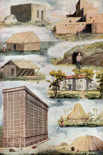 Keywords: Dwellings of different countries.jpg Dwellings of different countries and peoples 11 Mexican Adobe hut 12 Pueblo Indian dwelling 13 Hut in the Friendly Islands Oceanica 14 Icelandic hut 15 Borneo dwelling 16 Modern American dwelling 17 Fijian hut 18 Modern business building sky scraper 19 Kaffir hut South Africa Image LA2-NSRW-2-0286 jpg ExtractImage Houses in art Accommodation buildings Native American architecture Pueblo people Drawings of houses Torfbæir IQhugwane |